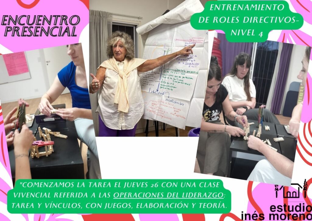Por qué no capacitamos, sino que ENTRENAMOS? Los adultos no aprendemos de la misma forma que los niños y además contamos con la experiencia del hacer. Cómo creer que más información cambiará actitudes o modos de procedimiento. Si aprender es modificar las conductas y transferir a las prácticas cotidianas nuevas formas de HACER y SER, no es posible capacitar a través solo de la escucha. Es necesario lograr que se ponga todo en acción; el pensar, sentir y hacer. Entrenar, supone poner en acto. Implica estar en acto. Supone un proceso de preparación para realizar una actividad específica, el entrenamiento implica un plan estructurado orientado a mejorar el rendimiento o alcanzar objetivos concretos. Entrenamiento de ROLES DIRECTIVOS- Nivel 4 comenzó el ciclo lectivo abordando las OPERACIONES de LIDERAZGO. A través de juegos y técnicas no convencionales, elaboración y marco teórico se buscó la toma de conciencia respecto de todas las acciones requeridas para conducir tanto la tarea como los vínculos.